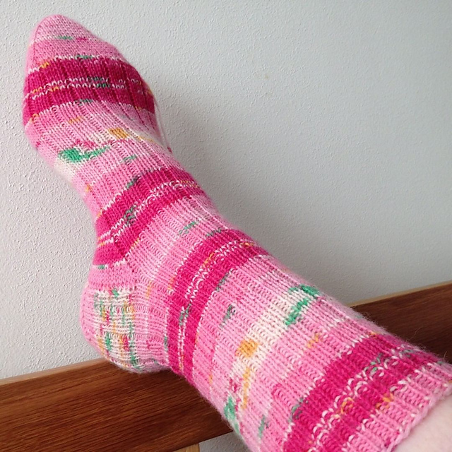 So, what's on my needles? This month I've been joining in with the Lots of Socks KAL in aid of Down Syndrome International (full details can be found here,* but the prize list is amazing and you only have to knit one sock to enter) so have two pairs of socks on the needles. The first pair are three-quarters done and are fabulously pink! The yarn is King Cole Zig Zag, in the colourway Pinks. The colour is not one I would typically go for, but is so marvellously cheery that it's perfect for February. I'm using a pattern from Kate Atherley's Custom Socks - Basic Ribbed Socks - and am planning on knitting several pairs of socks to this pattern over the next few months for a project I'll talk about once I have the first few pairs off the needles.